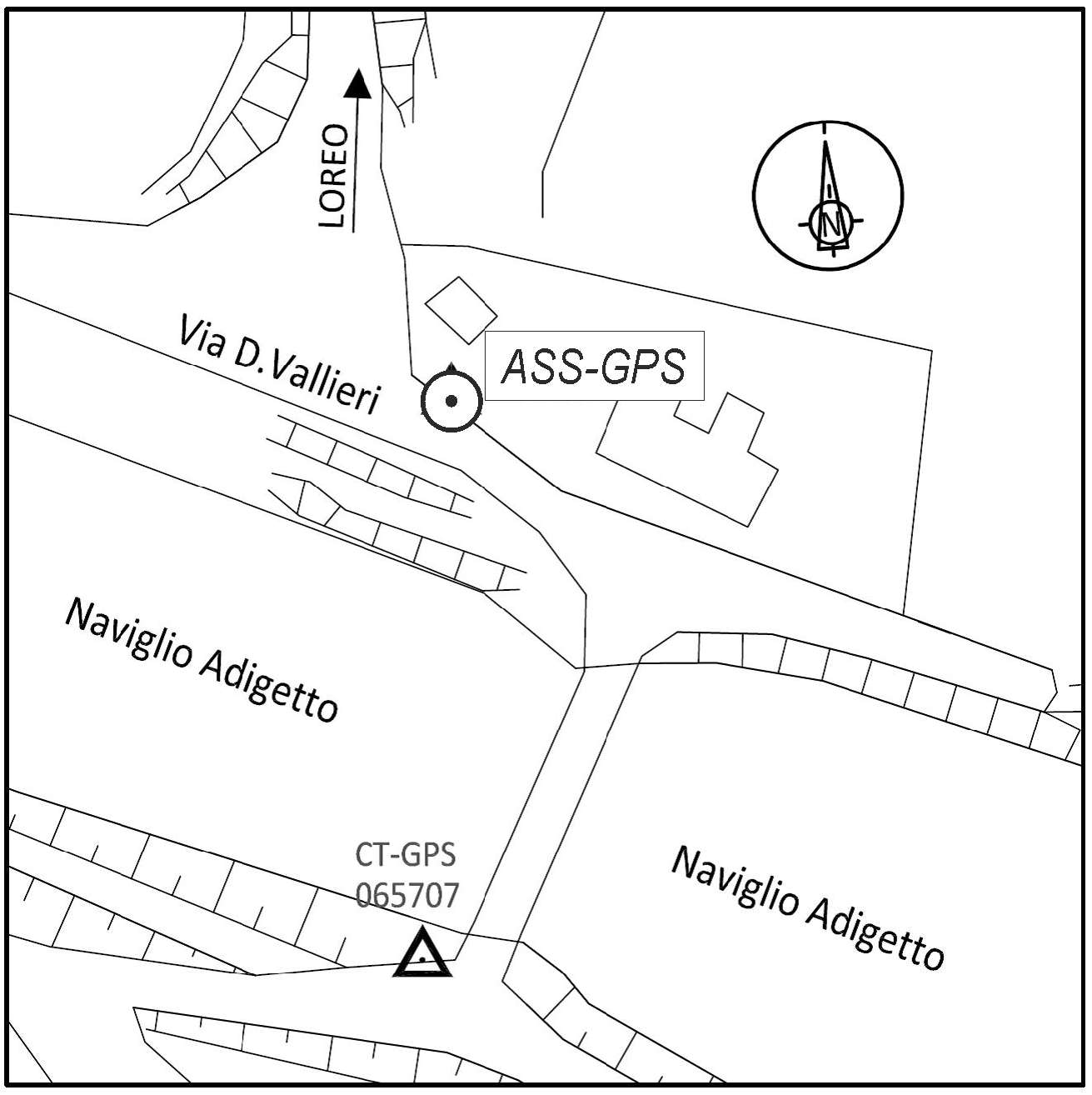 | materializzazione | Borchia metallica con foro centrale, infisso sul muro di sostegno in cemento armato, posto alla sinistra della strada d'accesso al ponte sul Naviglio Adigetto. |