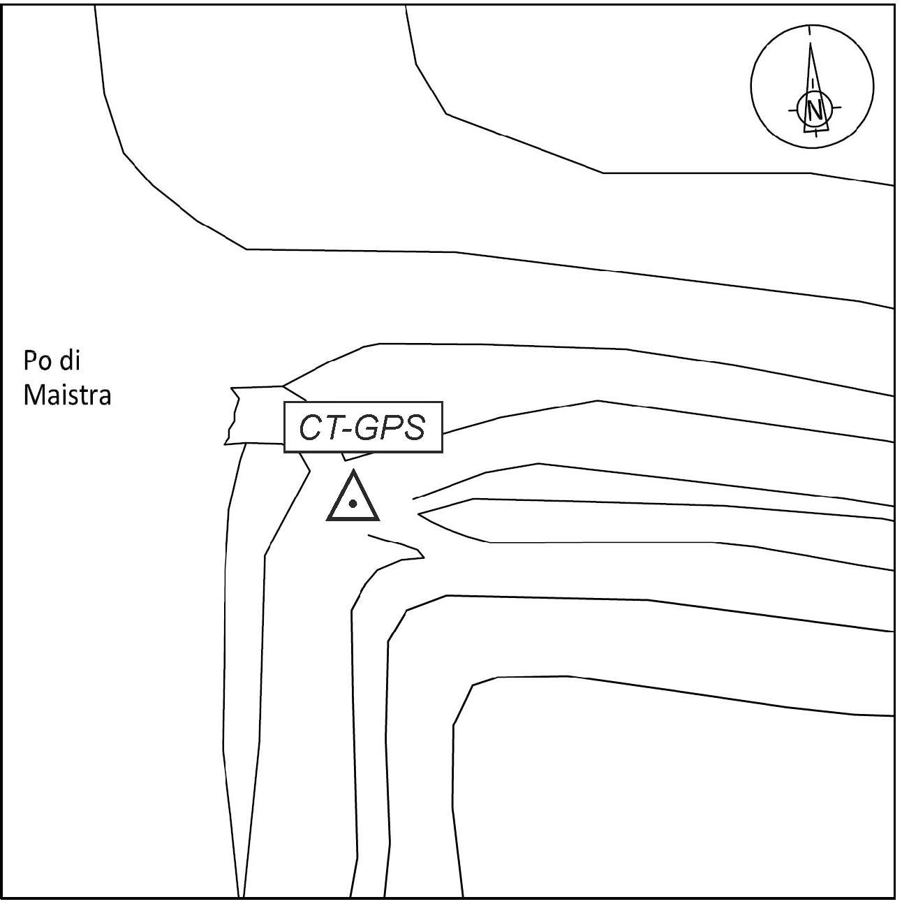 | materializzazione | Centrino metallico infisso sulla testa del palo nord in cemento, posto sulla sommità arginale della riva destra della foce del Po di Maistra. |