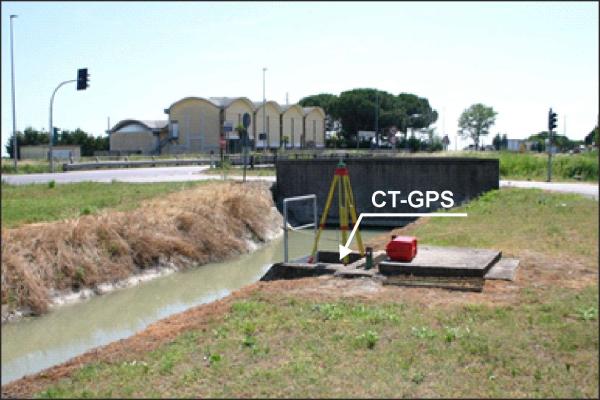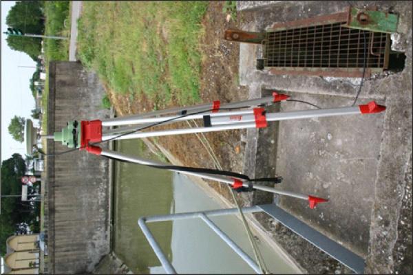 Centrino metallico cementato sul basamento in cemento armato del manufatto del canale.