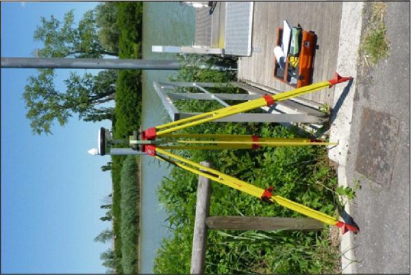 Centrino in acciaio inox del tipo "universale", infisso su cordolo in cemento armato posto alla sinistra dell'accesso al pontile di Goro.