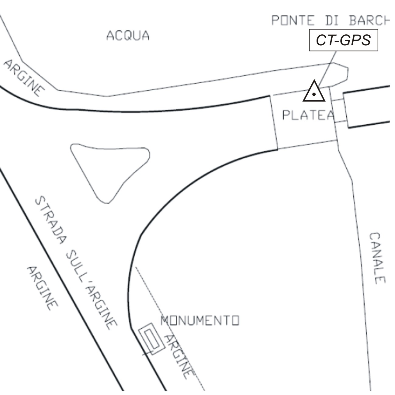 | materializzazione | Centrino in acciaio inox del tipo "universale", infisso su platea in cemento armato, della spalla ferrarese del ponte di barche sul Po di goro che collega Gorino Veneto con Gorino Ferrarese. |