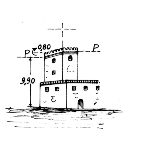 Torre. Asse geometrico della torre materializzato dal parafulmine esistente sulla sommità.