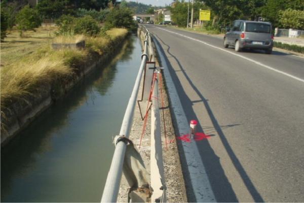 | materializzazione | Centrino metallico infisso su grosso muro di sostegno presso il bordo ovest della S.P. 4 di Fondovalle Panaro a Marano. |