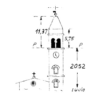 | Materializzazione | Campanile della chiesa parrocchiale. Asse geometrico del campanile materializzato da un centrino cementato sul pavimento della cella campanaria. |