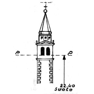 Campanile della chiesa Roncegno. Asse geometrico del campanile.