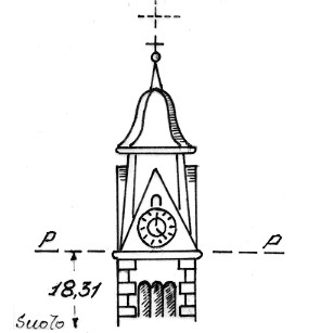 | Materializzazione | Campanile della chiesa parrocchiale di Anterivo. Asse geometrico del campanile. |