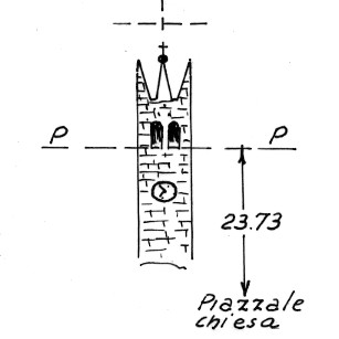 Campanile della chiesa parrocchiale. Asse geometrico del campanile, materializzato dalla croce terminale.