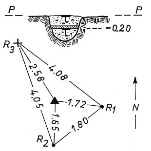 Centrini di superficie e di fondo cementati nella parte più alta del monte. Riferimenti: n. 2 centrini metallici (R1, R2) e una croce incisa su roccia (R3).