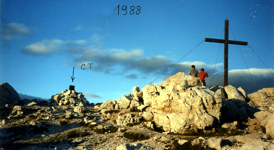 Segnale sulla cima del monte: 9 metri a Nord di una grossa croce in rame. Pilastrino triangolare in ferro con sottostante pietra e centrino coassiali. Riferimenti: tre centrini e la Croce nella posizione come da pianta.