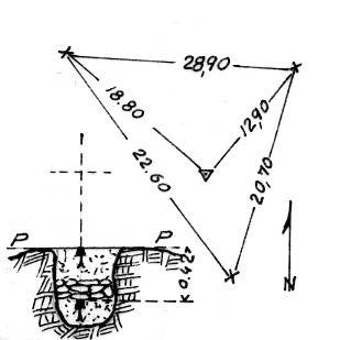 Segnale sul costone. Centrini di fondo e di superficie cementati in blocco di calcestruzzo. Riferimenti: N. 3 croci incise su massi.