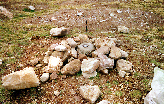 | Materializzazione | Segnale sul pendio Sud del monte di Verano a circa 200 metri dalla sommità piatta del monte. Centrino di fondo e soprastante centrino di superficie cementato alla sommità di un tubo circondato da un cumulo di sassi. Centrino GPS "A" fissato in asse al centrino di superficie. Rif. ti:R1, R2, R3 centrini. |