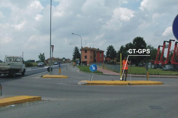 | materializzazione | Centrino metallico infisso sullo spartitraffico centrale in cemento, posto all'ingresso della zona industriale di Cavazzona sulla S.S. 9 – Via Emilia. |