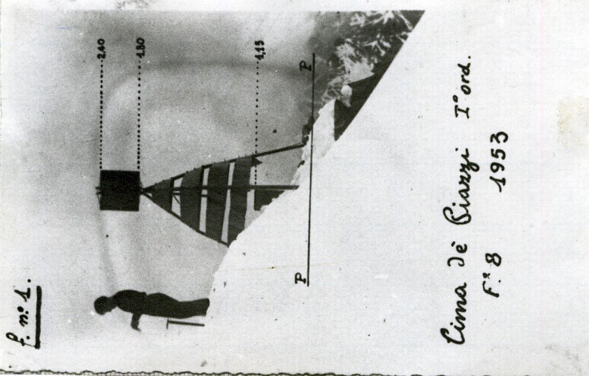| Materializzazione | Segnale posto sul punto più alto del monte ad Ovest di Bormio. Centrino metallico cementato su roccia con coassiale pilastrino in ferro. Collimatore di ferro FC . Riferimenti: tre croci (R1,R2,R3) incise su roccia. |