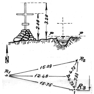 | Materializzazione | Segnale sulla sommità dello sperone delle pendici Sud di Cima degli Avvoltoi. Centrini di superficie e di fondo, in zinco, cementati in blocco di calcestruzzo. Riferimenti: come da pianta. R3 è una croce. (differenza coordinate: delta E=+2,70 delta N=-3,47) |