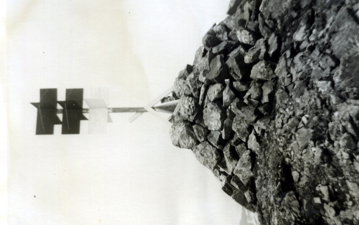 Segnale sulla cima del monte ad ovest di Valdurna. Centrini di superficie e di fondo coassiali cementati in blocchetti di calcestruzzo.