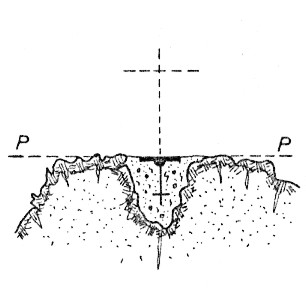| Materializzazione | Centrino di superficie cementato su roccia. |