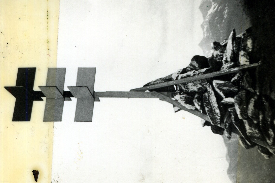 Segnale a pochi metri a S. E. della sommita' del monte a Sud di Moso. Centrino di fondo cementato su una roccia sulla quale sono incise le lettere R A. Riferimenti: 2 croci incise su roccia (R1, R2) ed un centrino cementato pure su roccia (R3).