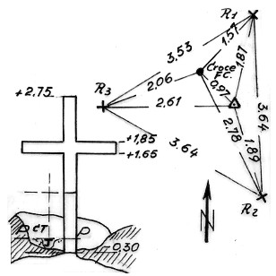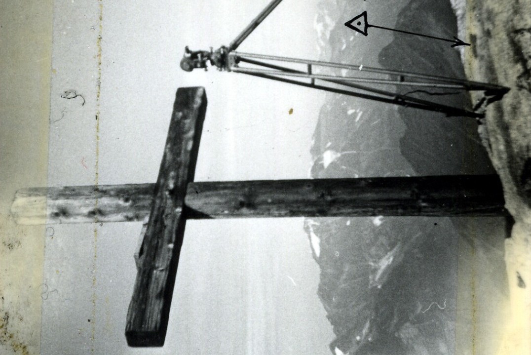 | Materializzazione | Segnale sulla sommita' del monte roccioso a N. O. di Merano. Centrino di fondo cementato su roccia a m. 0,97 a S. E. di una croce in legno. Riferimenti: 3 croci (R1, R2,R3) incise su roccia. |