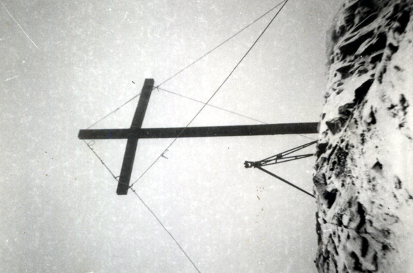 | Materializzazione | Croce in ferro sul Similaun. Asse della croce. Riferimenti: tre centrini cementati su roccia (R1 R2 R3) ed una pietra squadrata con la sigla K T scolpita sulla sommità (R4). |