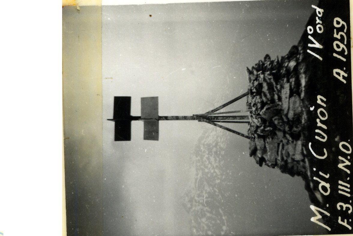 | Materializzazione | Segnale sulla parte piu' alta del monte. Centrini di fondo e di superficie cementati in blocchi di calcestruzzo. Riferimenti: due centrini (R2, R3) cementati in pozzetti di calcestruzzo ed una croce scolpita su roccia (R1). |