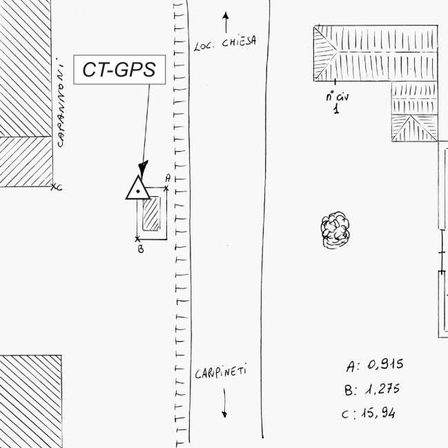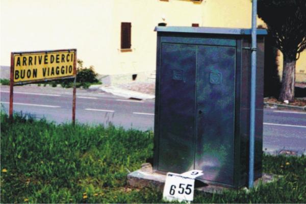 Centrino metallico infisso sul basamento in cemento sottostante la cabina del gas, situata davanti alla Chiesa di San Prospero, in località Cigarello.