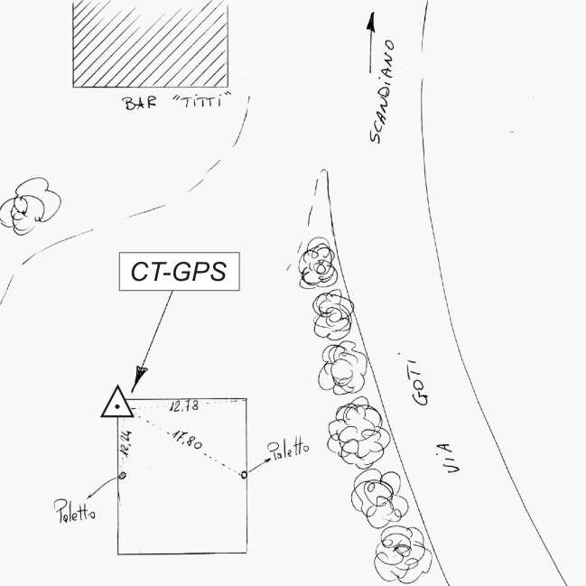 | materializzazione | Centrino metallico infisso sullo spigolo nord – ovest della platea in cemento adibita a campo di pallavolo, situato all'interno del piccolo parco giochi di Ventoso. |