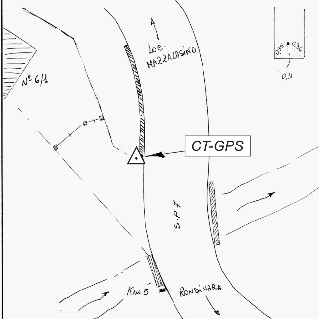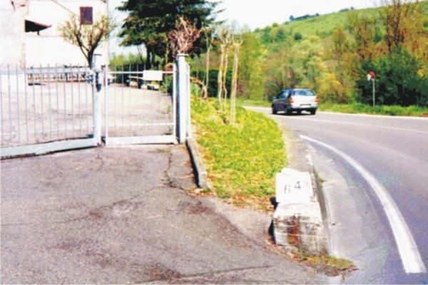 Centrino metallico infisso alla fine del muro di sostegno in cemento della S.P. 7, all'altezza del Km 5,000 ed in corrispondenza del civico 6/1.