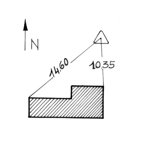 Centrino metallico cementato su roccia. Riferimenti: spigoli nord-est e nord ovest del casotto a forma di L.