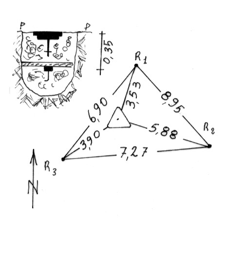 Centrini di superficie e di fondo cementati in blocco di calcestruzzo sulla sommità del monte. Riferimenti: 3 centrini metallici in blocco di calcestruzzo.