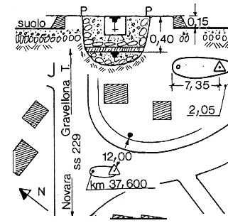 | Materializzazione | Sul bivio tra la strada statale 229 al Km 37,600 e la strada che conduce nel centro di Gozzano. Centrino di fondo e in asse un centrino di superficie cementati in blocchi indipendenti nell`aiuola spartitraffico del bivio. (GPS) |