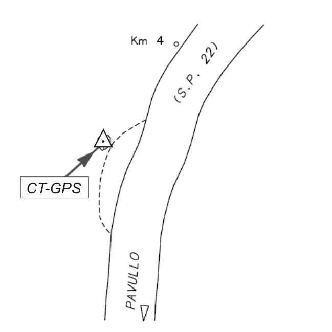 | Materializzazione | Centrino metallico infisso su una roccia affiorante poco distante dal bordo strada in direzione nord. |